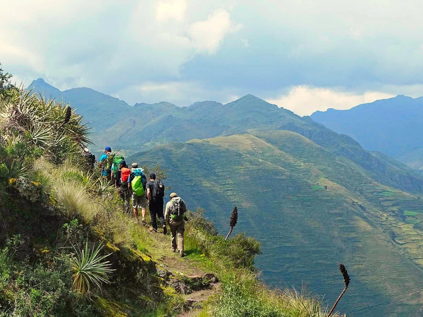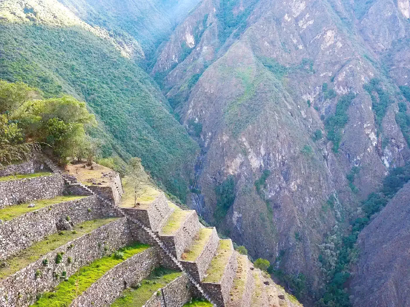 Nuestro viaje comienza temprano en la mañana. Primero, seguiremos el Camino Inca hasta Llactapata (2650 m s. n. m.) Este sitio arqueológico está situado en medio de una extraña vegetación y ofrece una vista excepcional de la montaña Machu Picchu.