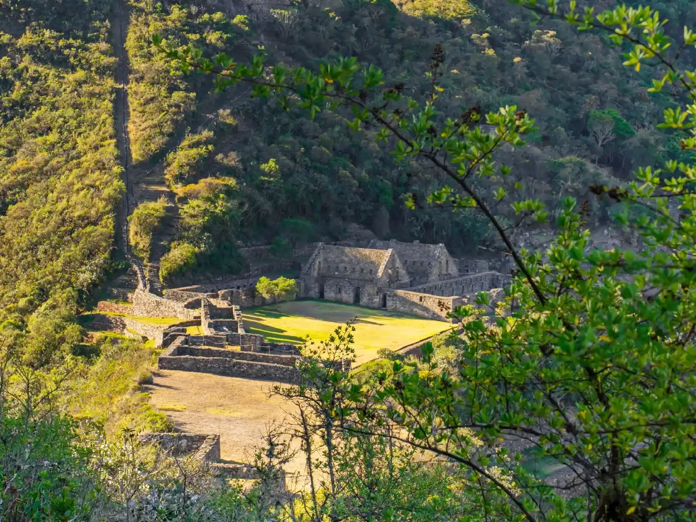Al amanecer, nos dirigiremos primero a la ciudadela de Choquequirao (3033 m s. n. m.) llamada “Cuna de Oro” y disfrutaremos de la tranquilidad de este lugar.