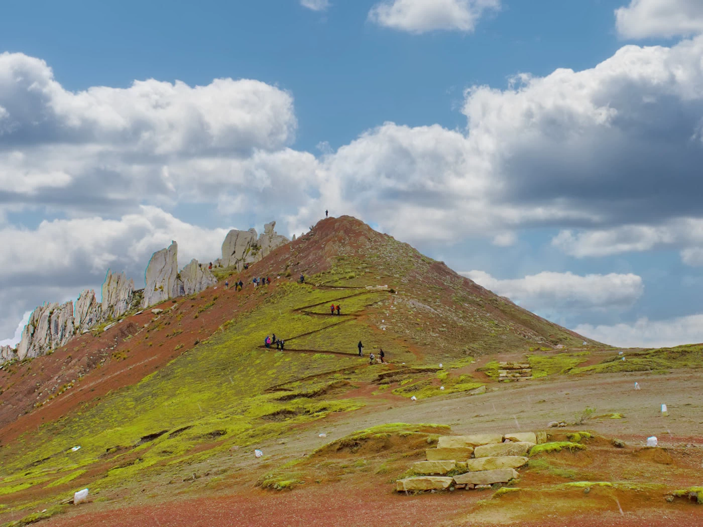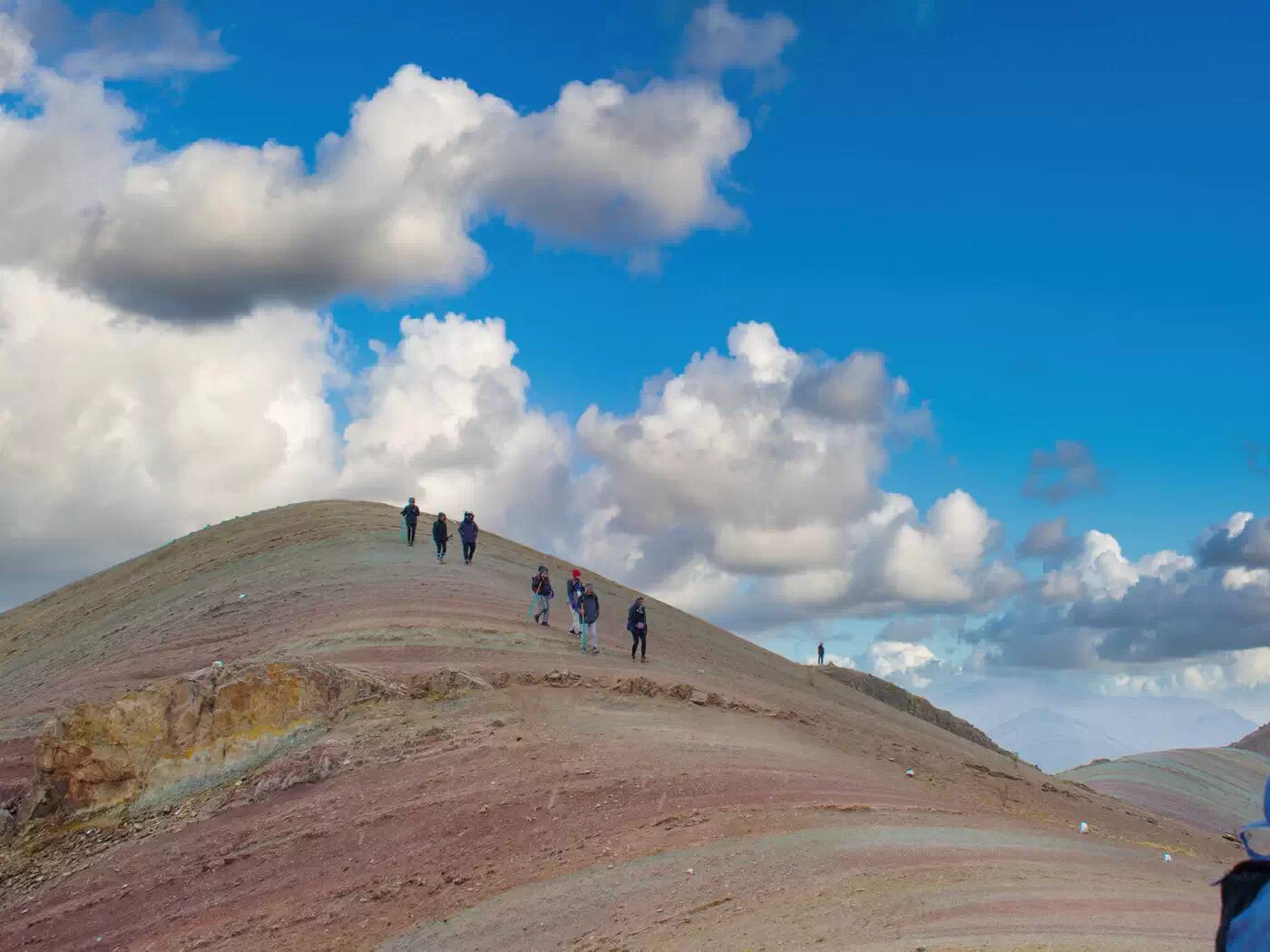 Nous partons tôt ce matin pour une aventure unique dans les montagnes arc-en-ciel de Palcoyo, une alternative moins fréquentée à Vinicunca, offrant des paysages époustouflants de montagnes colorées aux nuances de rouge, d’ocre et de violet.