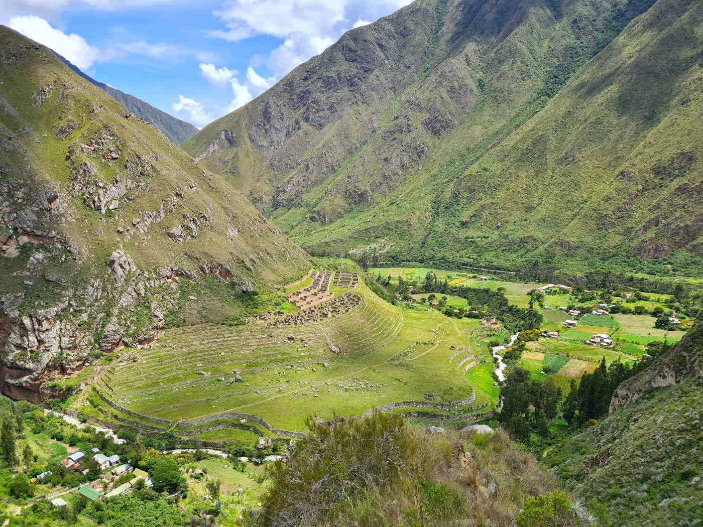 Au kilomètre 82, nous rencontrons notre équipe de soutien (porteurs) et commençons le Chemin de l’Inca. Après trois heures de marche, nous nous arrêterons pour déjeuner à Hatunchaka (3000m), un petit village où vous pouvez acheter de l’eau, des collations et utiliser les toilettes. Nous continuons ensuite vers notre camp d’Ayapata (3300m), la dernière ville sur le trajet.